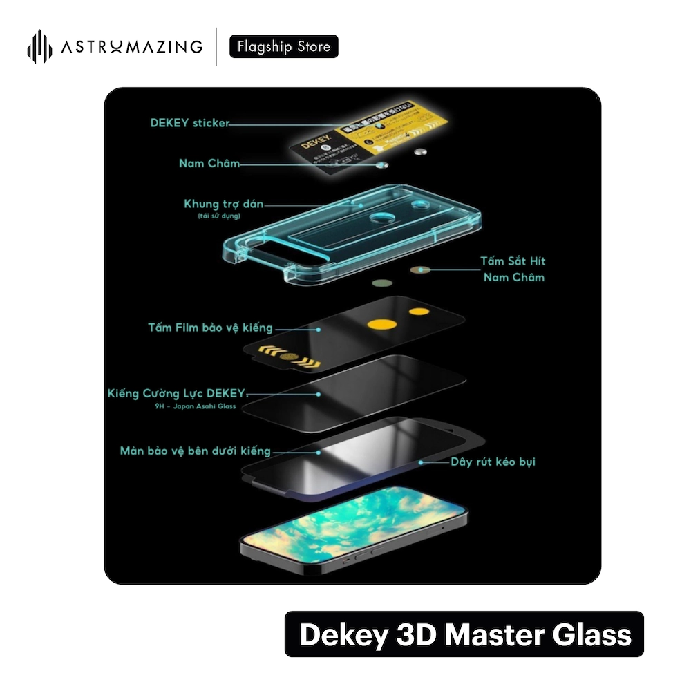 Kính cường lực iPhone kèm khung tự dán Dekey